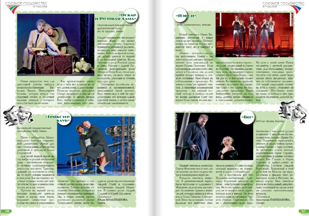 В июльском номере журнала «Союзное государство» (Россия, Беларусь) вышла статья о премьере спектакля «Трикстер Клуб» в Белорусском государственном молодежном театре.